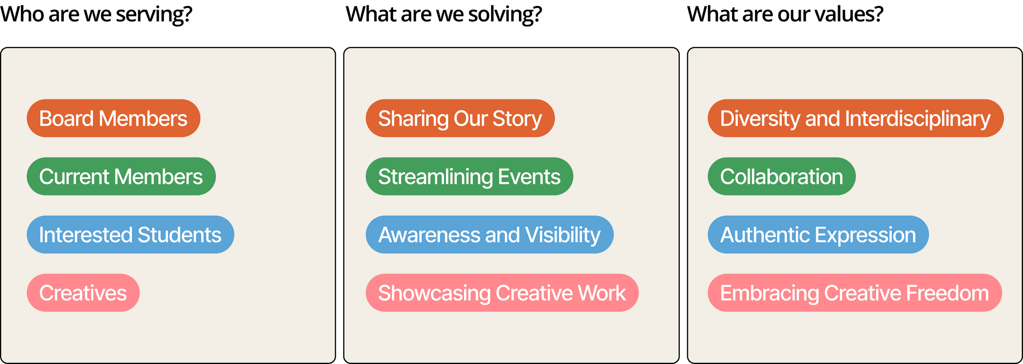 Before starting anything, we answered the 3 product principles to understand the problem and mission at hand.
